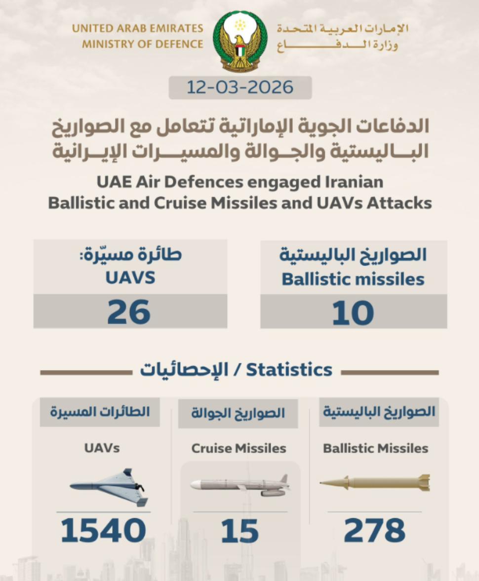 这一次中东大战有一个没人注意的点,整个海湾阿拉伯国家都是美以第一道防空拦截区。 昨天一个晚上,沙特拦截2枚弹道导弹,65架远程攻击型无人机,阿联酋拦截10枚弹道导弹,26架远程攻击无人机。 聚焦本轮中东局势的激烈交锋,外界目光大多锁定在正面战场的攻防态势上,却极少有人留意到藏在防线深处的关键细节,整片海湾阿拉伯国家,早已悄然成为美以阵营的第一道防空拦截区。 这片扼守波斯湾咽喉的区域,成了抵御远程空中袭击的前沿屏障,一夜之间便打响了密集的防空阻击战,多国防空力量全程紧绷、接连出击,扛下了海量来袭目标的冲击。 单看昨夜的实战战果,沙特的防空拦截力度尤为突出,面对来袭的弹道导弹与远程攻击型无人机,沙特防空部队依托完备的防空体系精准布防,成功拦下2枚具备高速突防能力的弹道导弹。 更是一举拦截65架远程攻击型无人机,这类无人机往往采用低空突袭模式,隐蔽性强、来袭批次密集,想要尽数拦截需要防空系统全程高速运转、精准锁定,每一次拦截都是对防空战力的实打实检验。 紧邻沙特的阿联酋也没松懈,防空预警雷达全程紧盯空域异动,面对多波次袭来的空中威胁,稳稳守住防线,成功拦截10枚弹道导弹。 同时化解了26架远程攻击无人机的突袭企图,没有给来袭目标留下可乘之机,用密集的防空拦截筑牢了区域防空的关键一环。 作为海湾核心国家的科威特,同步扛起了前沿拦截的重任,面对来袭的空中目标,防空部队快速响应、精准拦截,顺利拦下4枚弹道导弹,同时成功处置5架远程攻击无人机,全程紧盯空域风险,不给任何来袭目标突破防线的机会,稳稳守住了本国空域安全。 卡塔尔也在本轮防空拦截中全力出击,面对混合来袭的空中威胁,防空力量精准甄别目标、高效实施拦截。 不仅拦下2枚弹道导弹,还成功拦截1枚巡航导弹与多架远程攻击无人机,巡航导弹飞行轨迹多变、突防难度更高,卡塔尔防空部队依旧凭借过硬的防控能力顺利化解威胁,进一步夯实了海湾区域的整体防空防线。 这场彻夜打响的防空阻击战,用实打实的拦截数据印证了海湾阿拉伯国家的前沿拦截定位,这片区域用密集的防空行动,撑起了美以阵营的第一道空中防线,也成为本轮中东战事里最容易被忽略的关键战场。 本文内容皆为个人看法,如有更好的见解欢迎在评论区留言讨论。