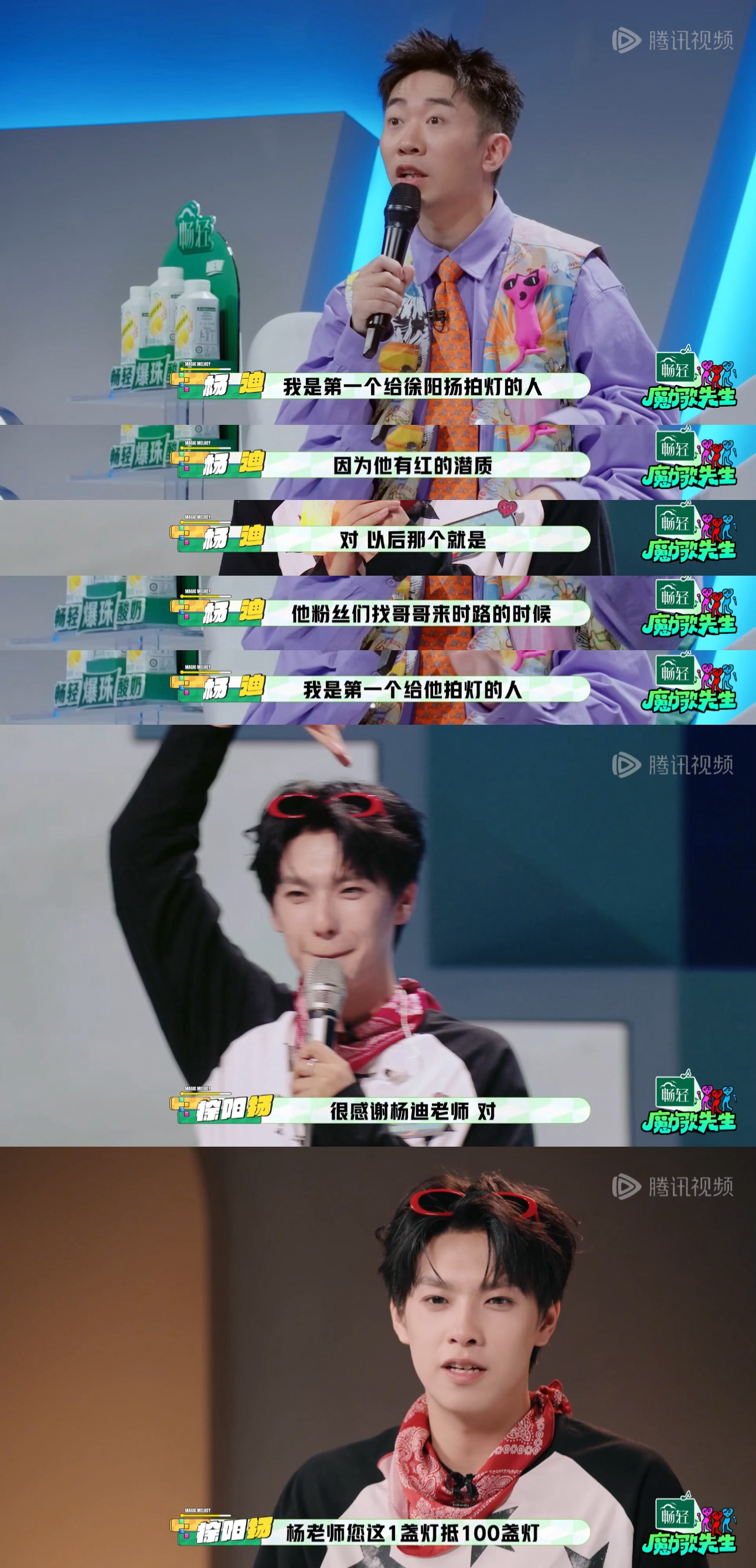 杨迪不愧是成为时代峰峻水印的男人 杨迪真的太懂内娱生存法则!徐阳扬初舞台他第一个果断拍灯,积极到生怕粉丝考古看不到,全程在线撑腰,眼光超毒,这波入股不亏,坐等弟弟发光!魔力歌先生