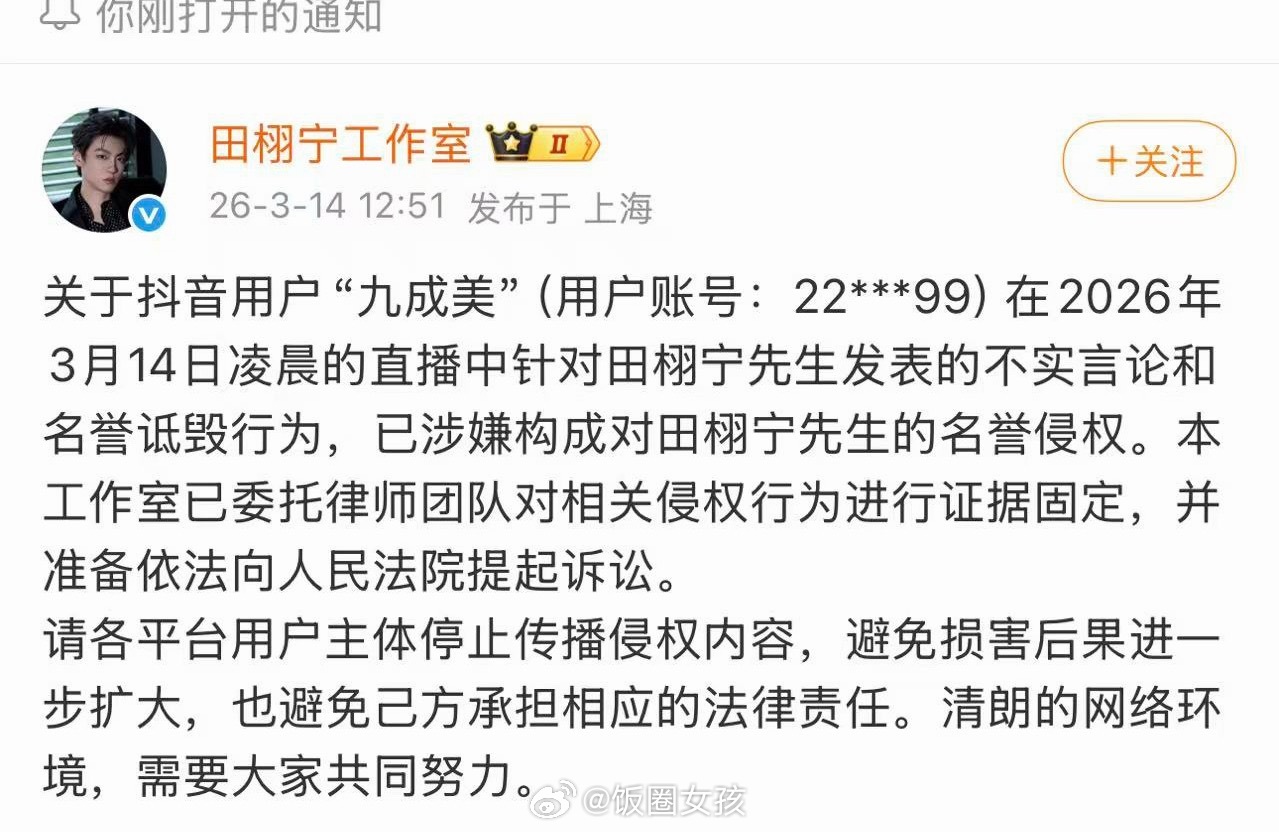 华策田栩宁工作室告了九成美!支持大帅哥!田栩宁方将起诉九成美