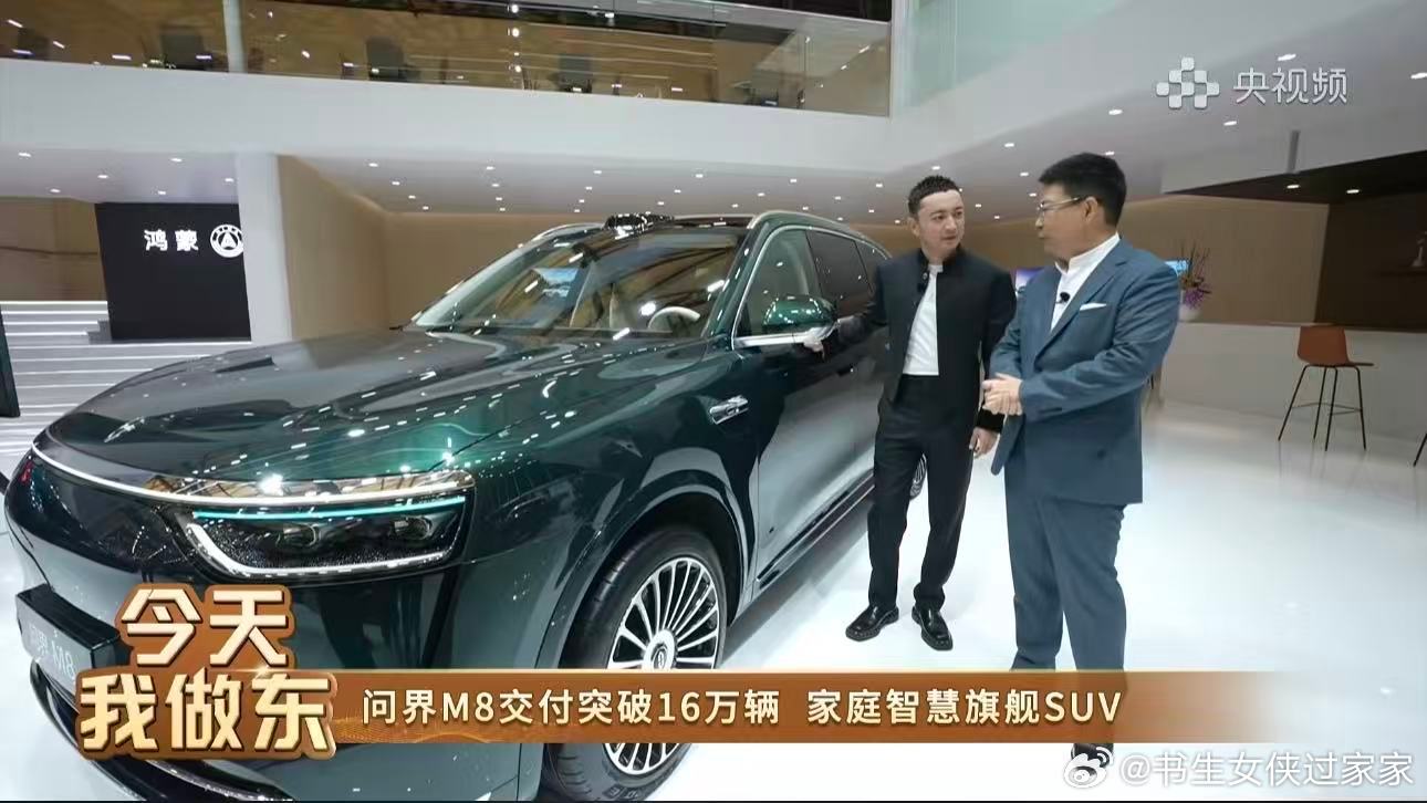 AWE华为全场景智慧生活 在近日开幕的AWE(中国家电及消费电子博览会)上,问界M8重磅亮相华为展台。作为40万级SUV年度销冠,问界M8累计交付已突破16万辆,并以88.7%的超高净推荐值(NPS)位列全车型NPS总榜第二,成为最受用户推荐的家庭智慧旗舰SUV。现场,余承东与尼格买提的直播对谈中,更将问界M8称为 “哄娃神器”,满足家庭用户对智慧出行的每一份期待。余承东称问界M8交付突破16万辆