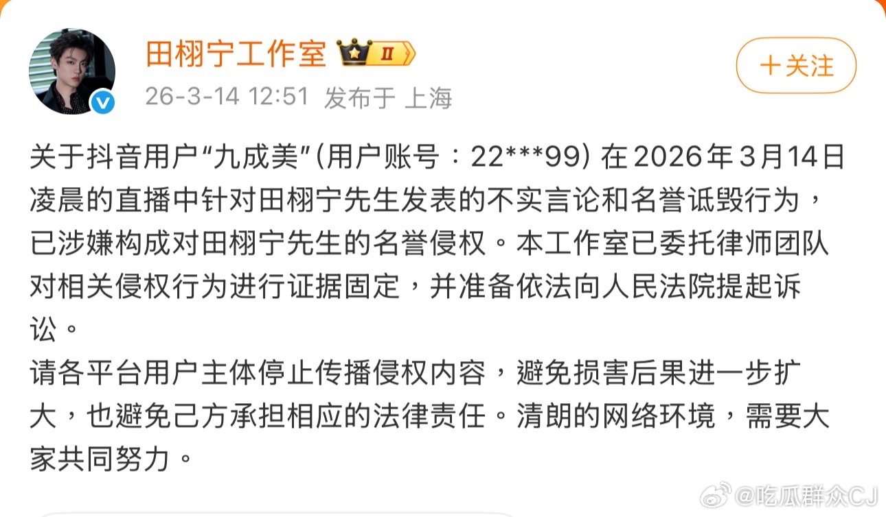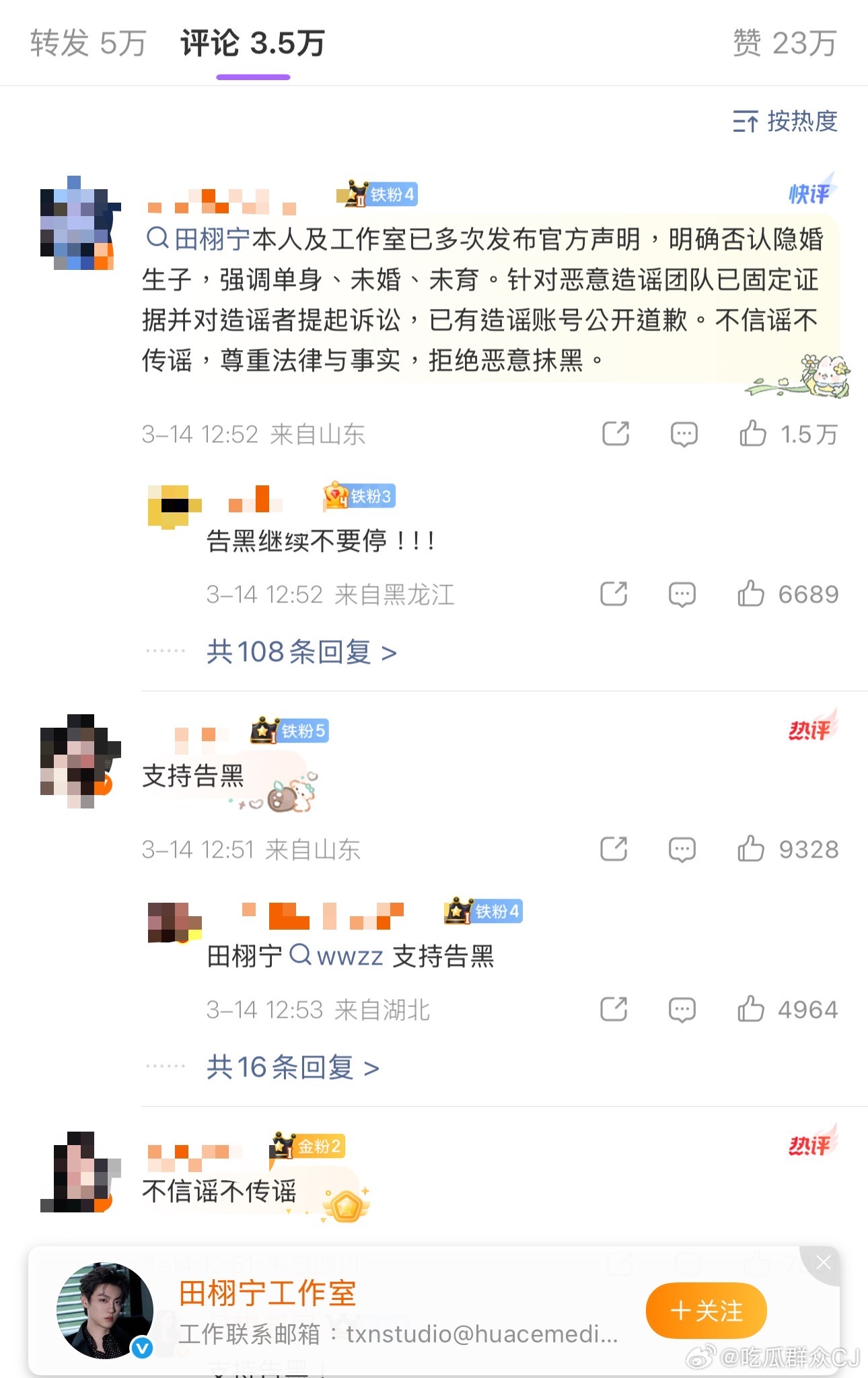 看来艺人、团队和粉丝都不是很在意谈不谈,毕竟都是真的都没法辟谣,但未婚未育这点是重中之重是一定要强调的。田栩宁方将起诉九成美