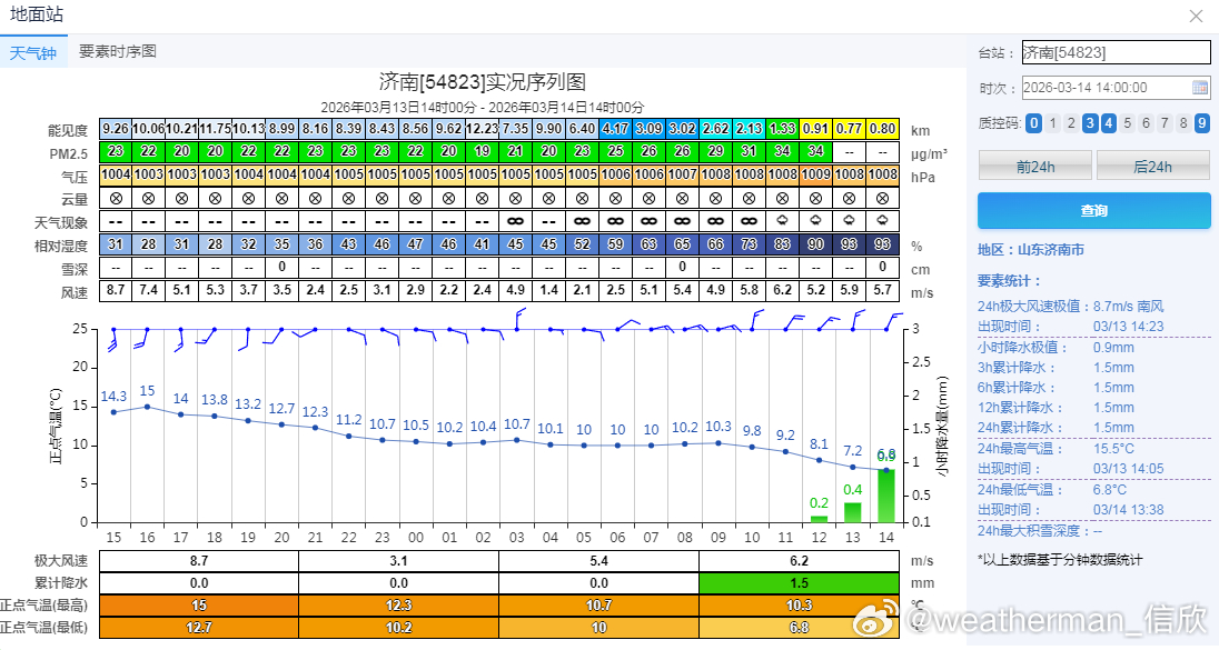 今天白天,济南和重庆,气温均出现倒降走势,下午气温比凌晨还低。而在冷空气到来前,江南多地气温还在上升。此外在冷空气过后,新疆、甘肃西部、内蒙古中西部气温也在回升。