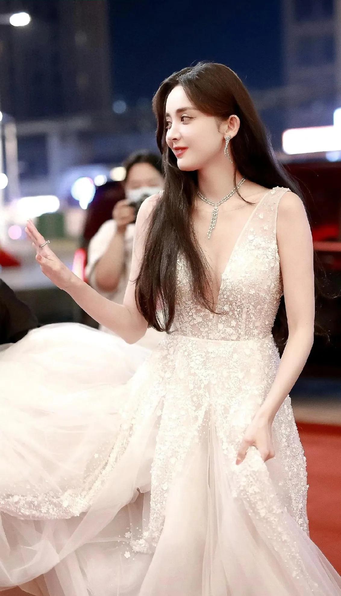 🔥古力娜扎杀疯了! 白色蕾丝深V裙勾勒完美腰臀比,长发配红唇,清冷又妩媚,这颜值和身材真的看不够! 古力娜扎 好身材 红毯造型