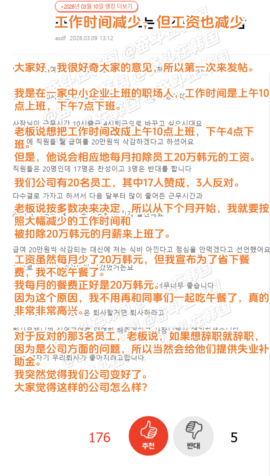 热帖:大家同意工作时间减少,但工资也减少吗?海外新鲜事热点现场