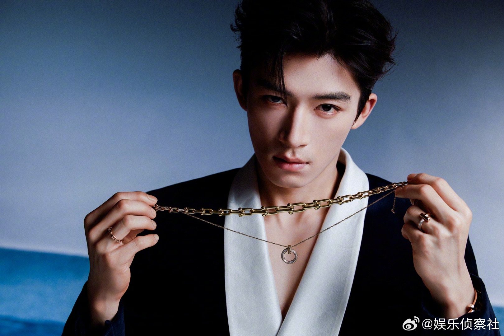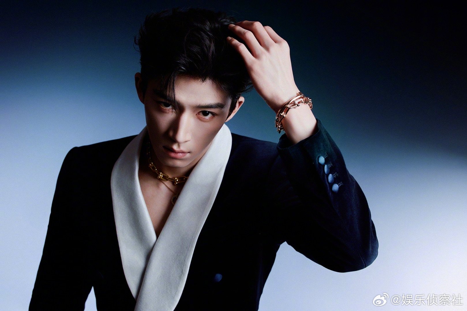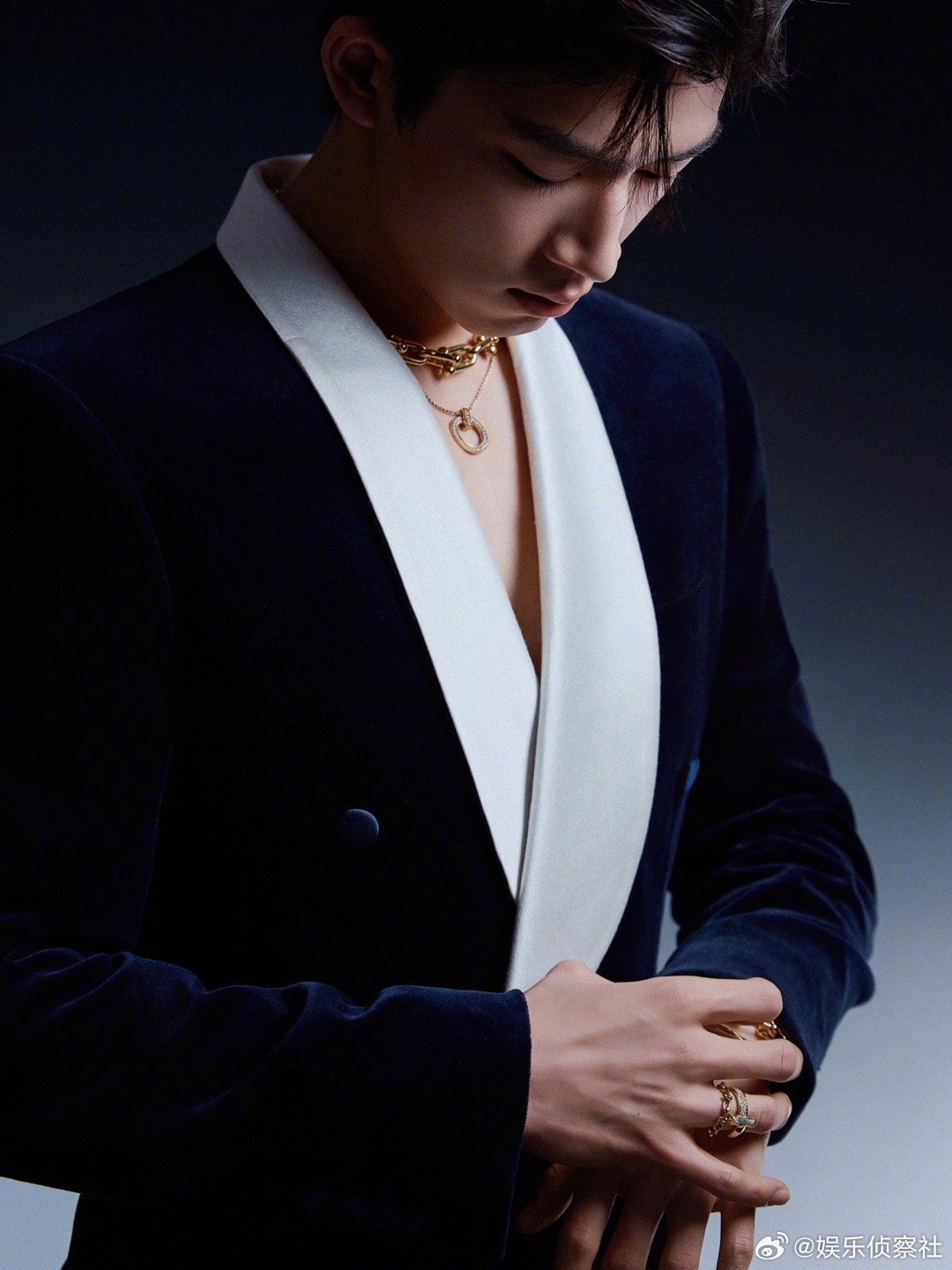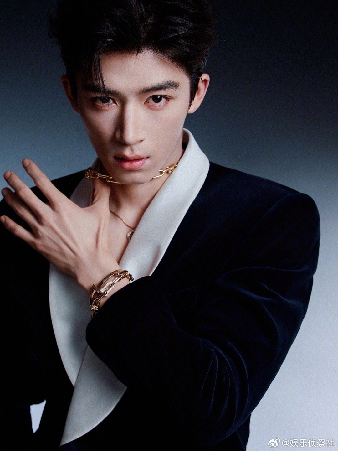 王星越蓝丝绒真空深V西装王星越蓝丝绒真空深V西装蓝丝绒自带贵气柔光,真空深V利落又性感,王星越把矜贵与野性平衡得刚刚好。肩颈线条流畅精致,锁骨禁欲又撩人,丝绒质感与珠宝碰撞,高级感拉满。少年清俊混着成熟气场,每一帧都像画报,这颜值与身段真的太绝了!