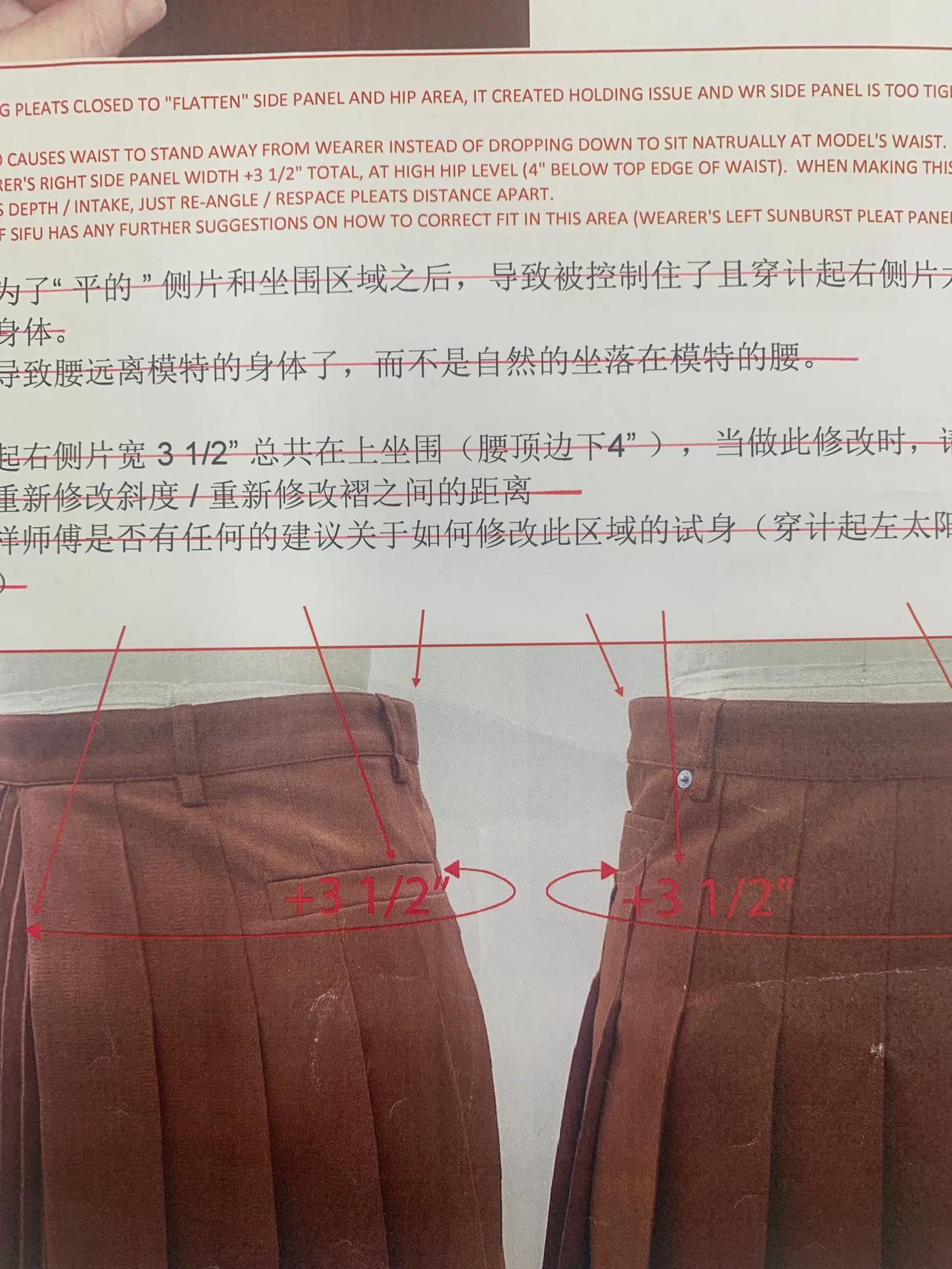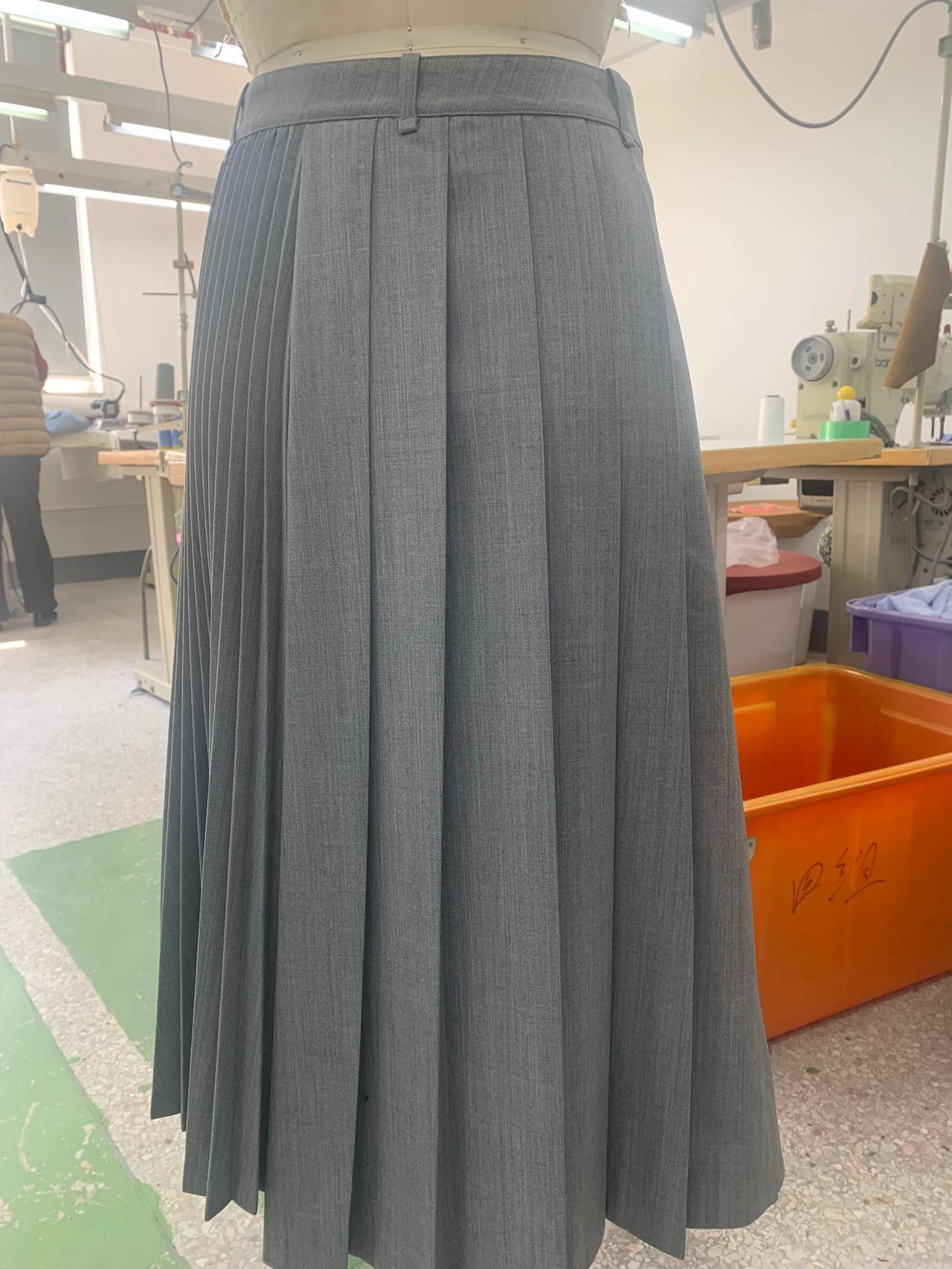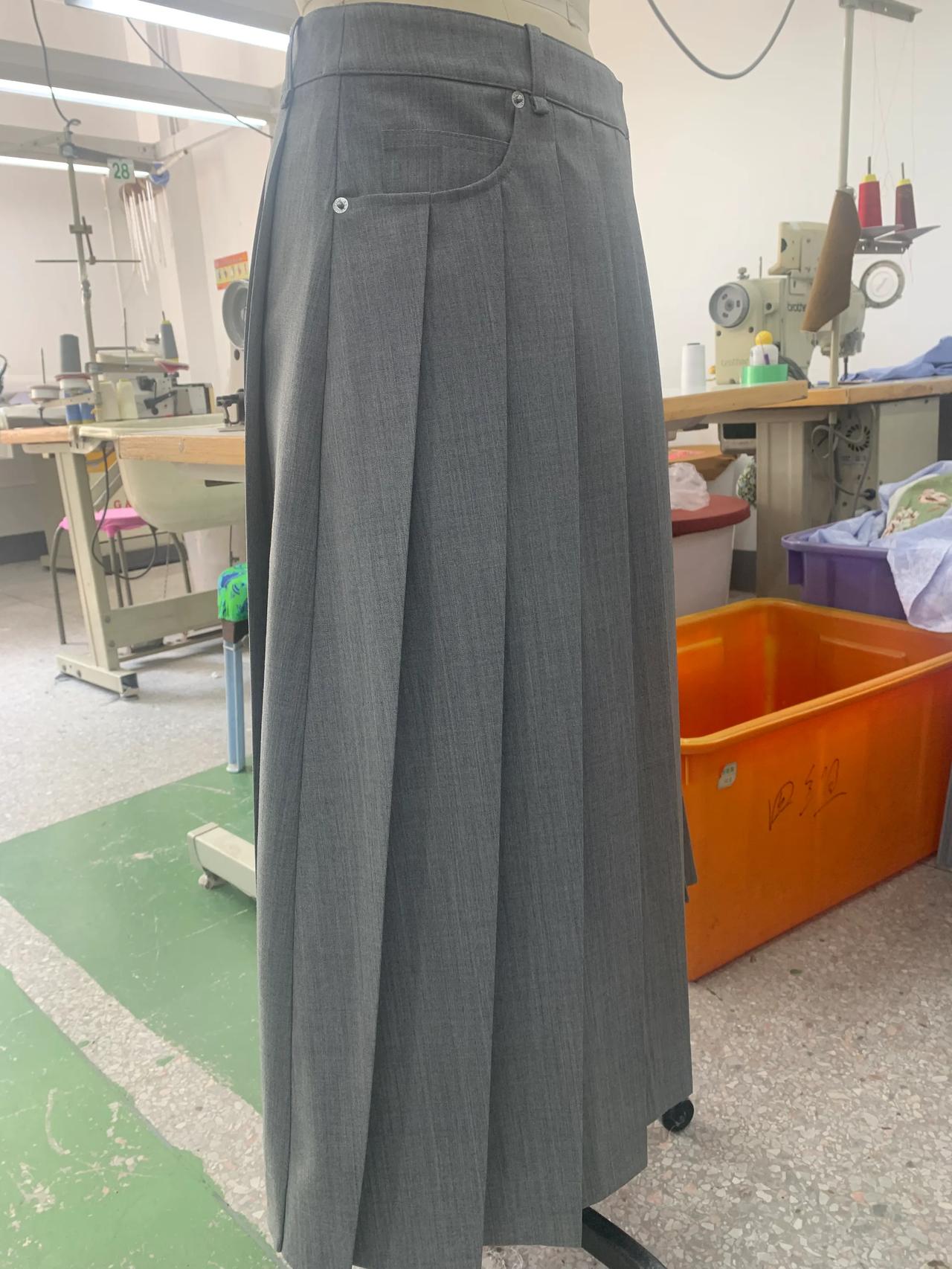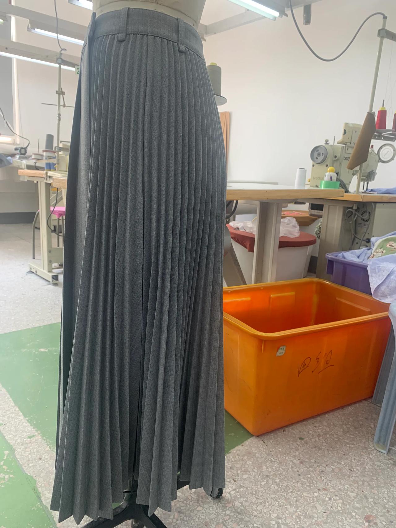 经过多次沟通和改版,这条裙子终于正常一点了。 这就是我们周末加班赶制的批版。因为客户想要在百折裙上加后袋,做出来穿在模特上效果不好,经过多次沟通和改版,现在看起来好看多了。 虽然这条裙子看起来普通,做起来挺麻烦的。裙子上的百褶要去专业的厂家压褶,在车缝的过程中,技术要求也很高,不能起褶变形,还要保证小的束褶是直立的状态。 正所谓外行看热闹,内行看门道。无论什么产品,保护原创很有必要,因为原创投入了大量人力和精力,成本很高。