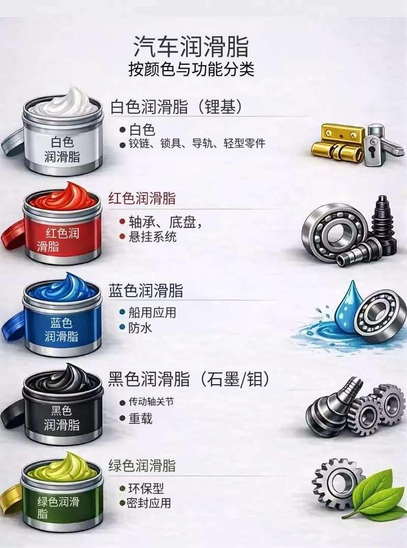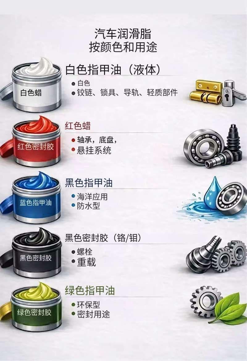 🛠️汽车润滑脂颜色不一样?这可不是花架子! 咱们一次说透:汽车润滑脂的颜色