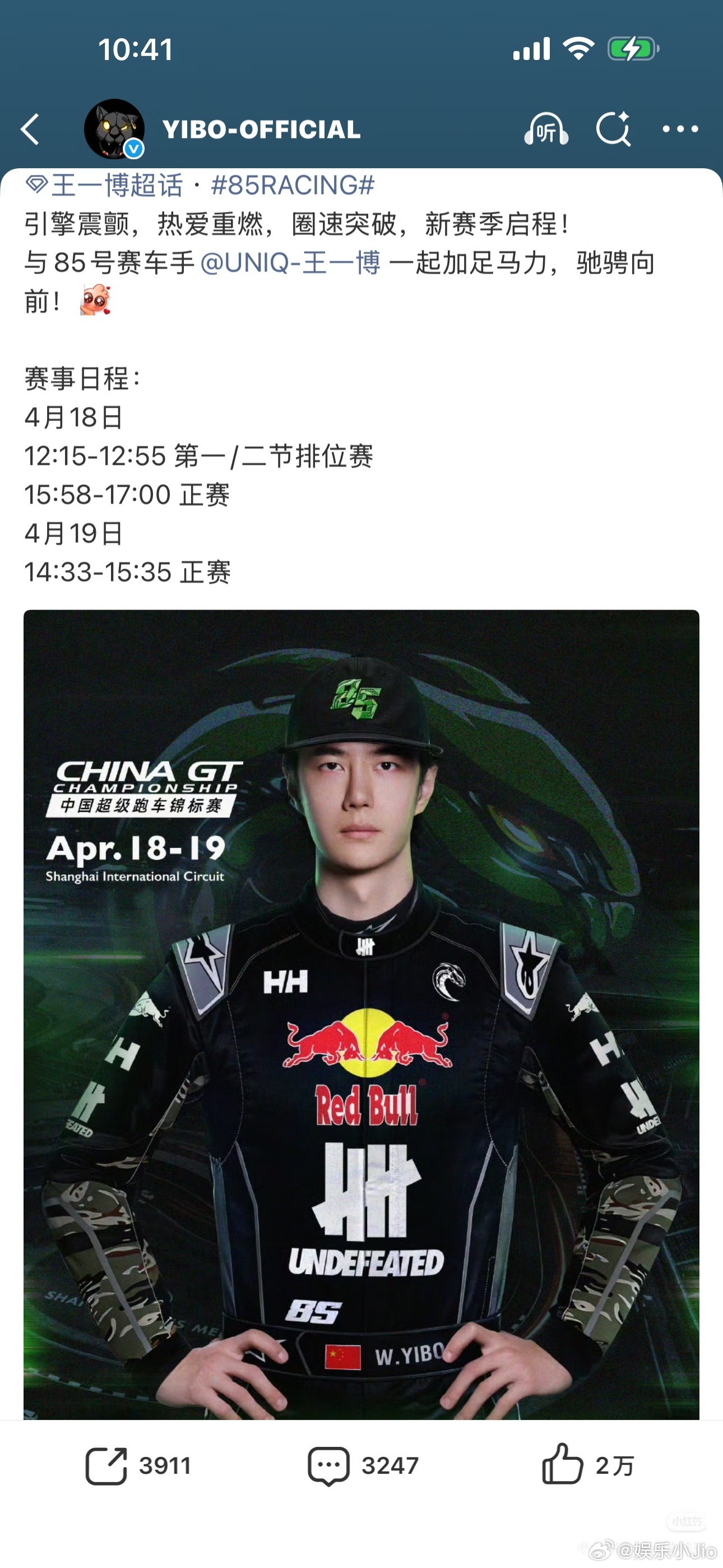 内娱独一无二给国际品牌发title第一人王一博,王一博主导官宣新赛车季👏🏻👏🏻👍🏻👍🏻🤩。