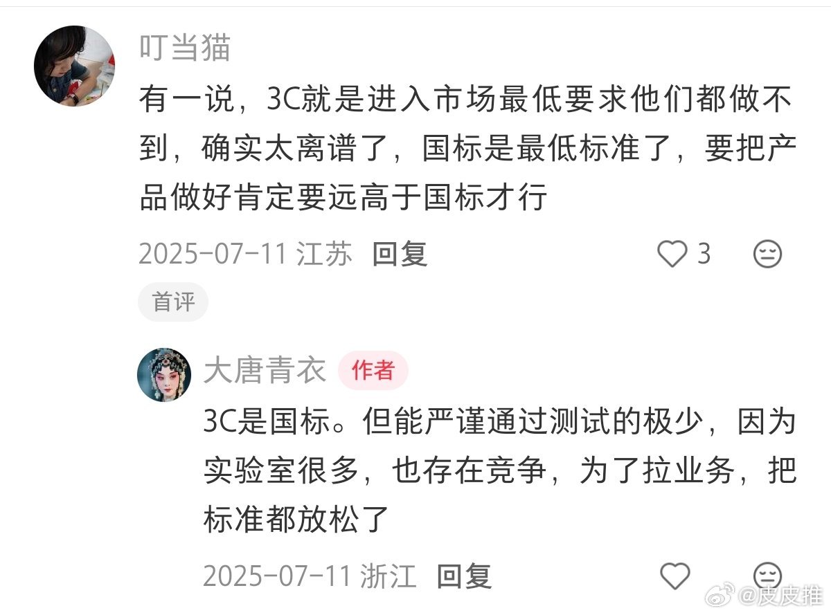 起底3C认证充电宝造假产业链网友评论:有一说,3C就是进入市场最低要求他们都做不到,确实太离谱了,国标是最低标准了,要把产品做好肯定要远高于国标才行。科技先锋官