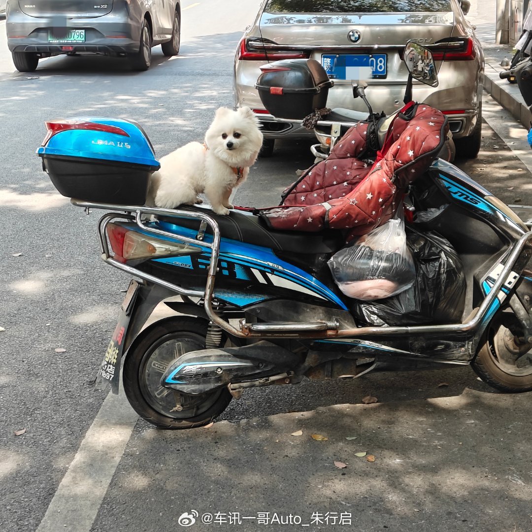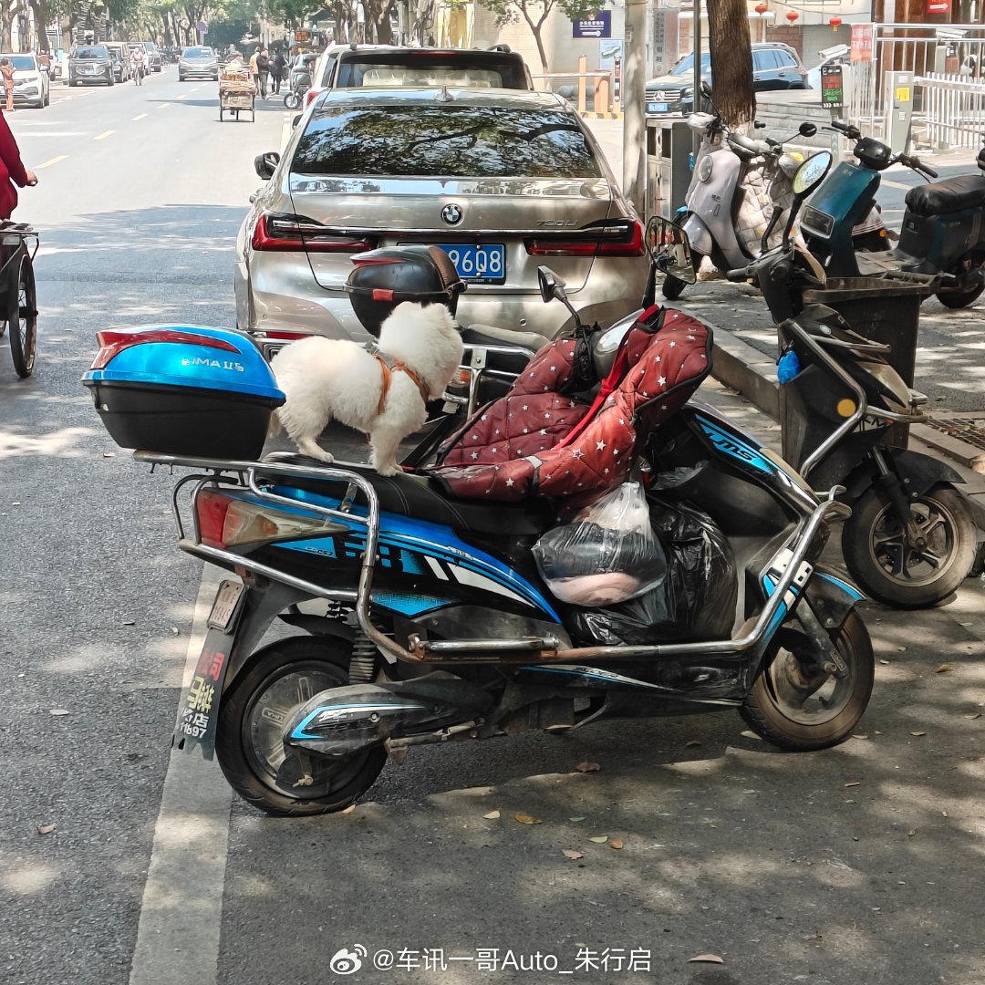 买菜的时候看到一个狗子看起来倒是比较乖巧一个绳子就老实坐车上看来它有良好的自我管理能力