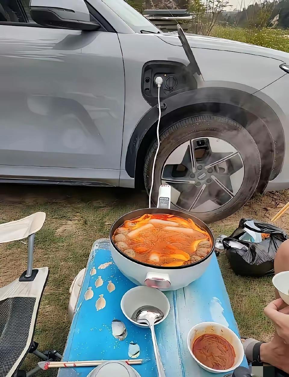 开车出去郊游,还能在营地那里打个火锅,这种生活实在是太惬意了。真的是汽车革命带来了新时代,让新能源汽车有了多种的玩法,打破了传统的理念。