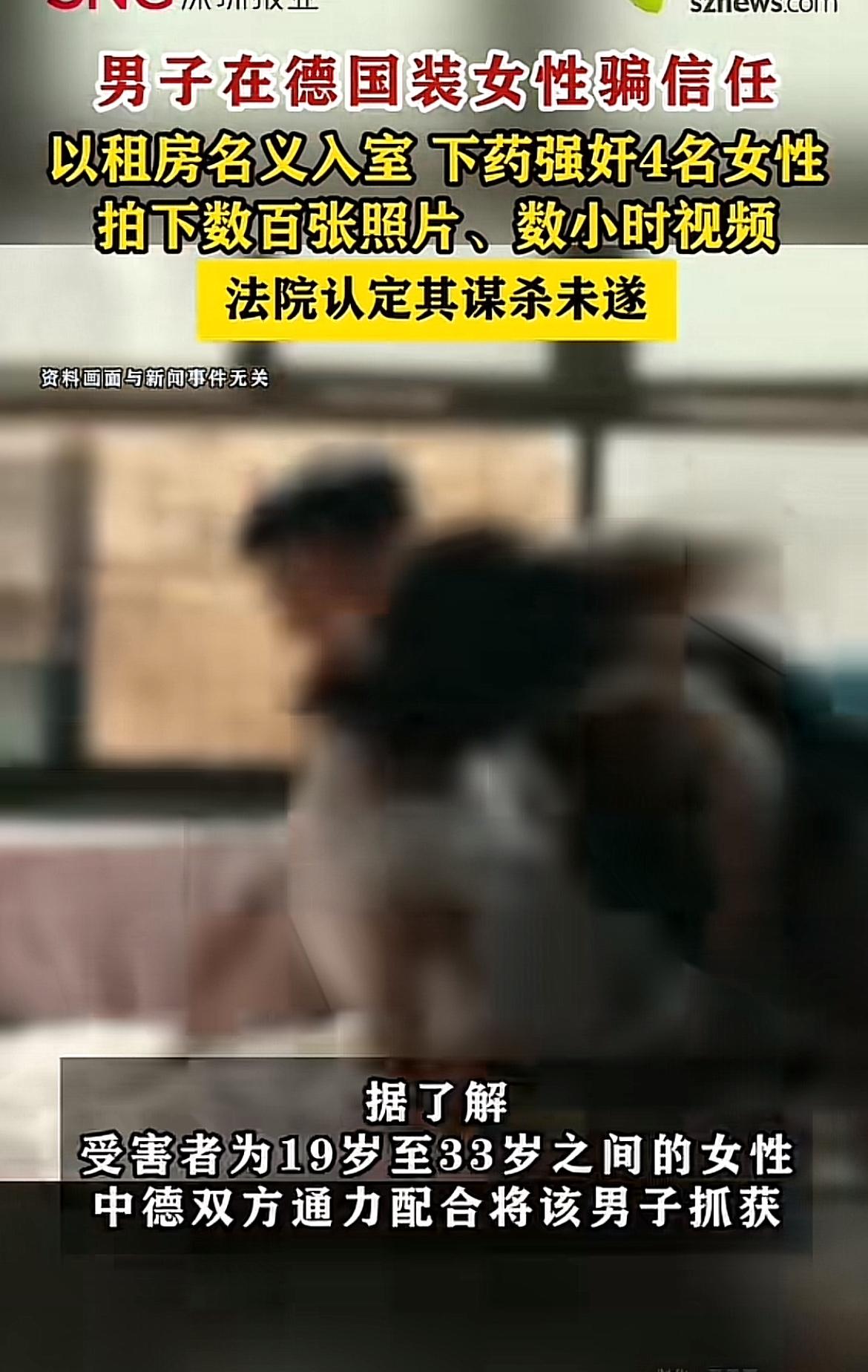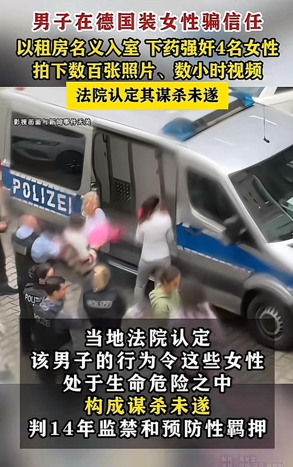 留德男子张大鹏的所作所为简直令人发指!他身为毕业于国内顶尖学府、在德有体面工作的高材生,却干出如此丧尽天良的事。 2024年起,他在中文社交平台伪装女性,以租房为诱饵约见中国女性。见面后下药迷晕实施强奸,还拍摄私密影像传播,部分受害者因药物过量需紧急送医。受害者多是19 - 33岁的年轻女性,本以为是“姐妹”看房,却遭遇恶魔。 2024年底他被中德警方抓获,2026年3月获刑14年。他利用同胞信任犯罪,突破人性底线,这14年牢狱之灾真是罪有应得!
