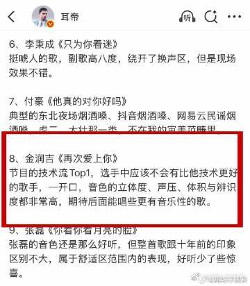 耳帝说金润吉是魔力歌里技术Top1 金润吉在音综里唱《再次爱上你》,那沙哑烟嗓一出来,直接把歌曲演绎得淋漓尽致!立体度、声压、辨识度全都在线,听得人如痴如醉!这么多年过去,他的唱功还是那么稳,耳帝都认证他是技术流佼佼者,这实力真的没谁了!