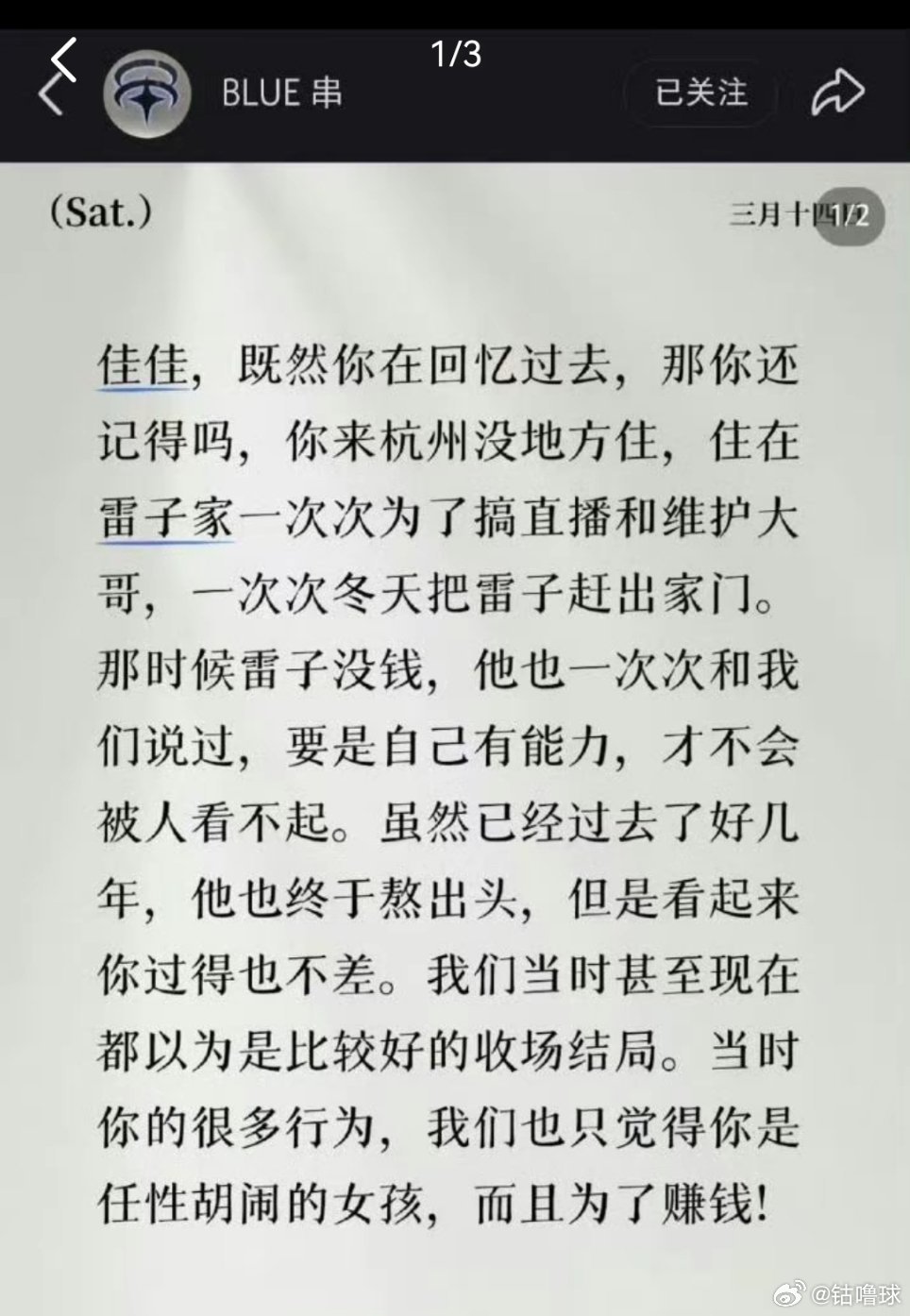 BLUE串喊话九成美这哥们太逗了,粉丝说了一天的ai,被你一个小作文给实锤了,田