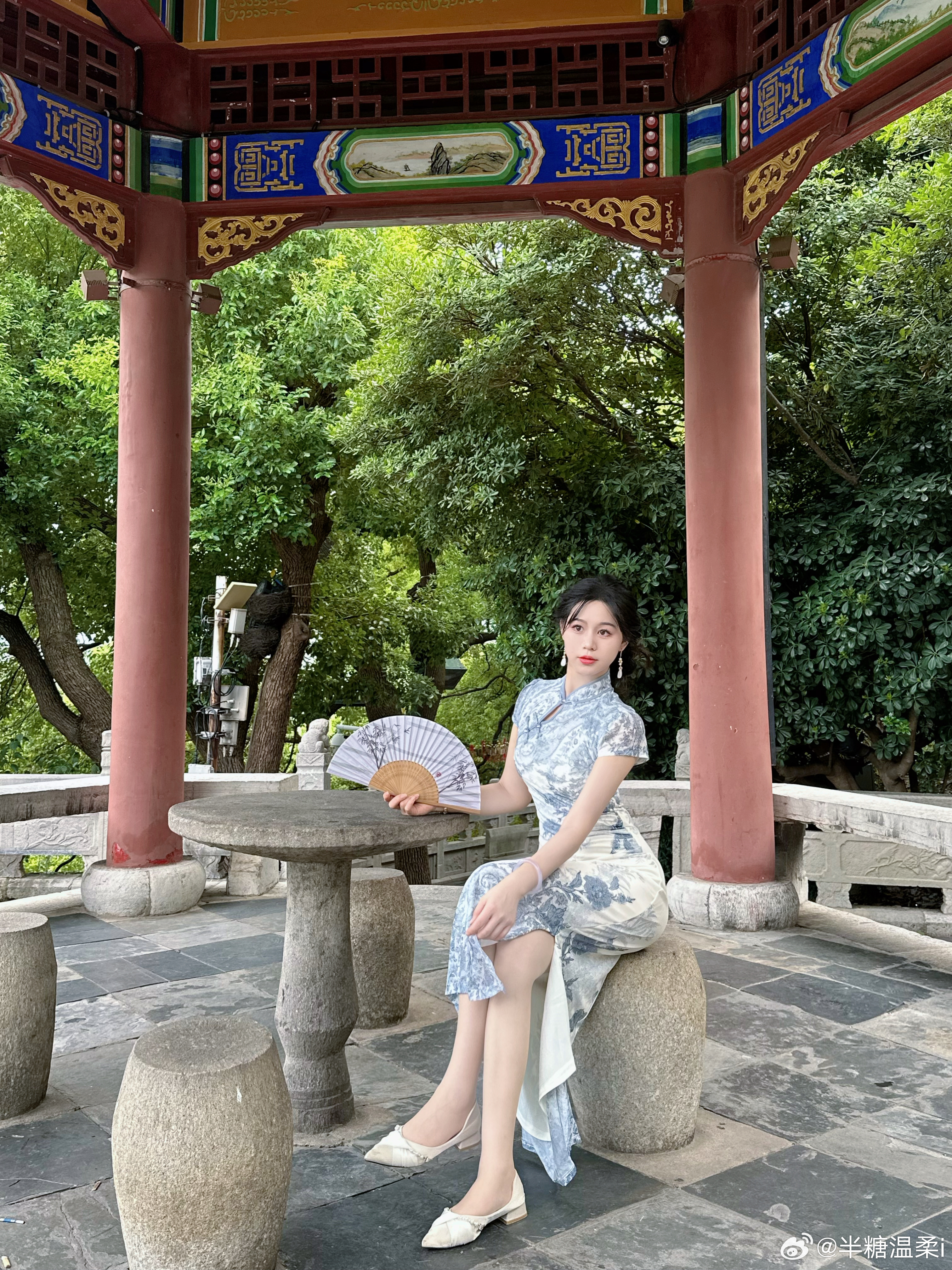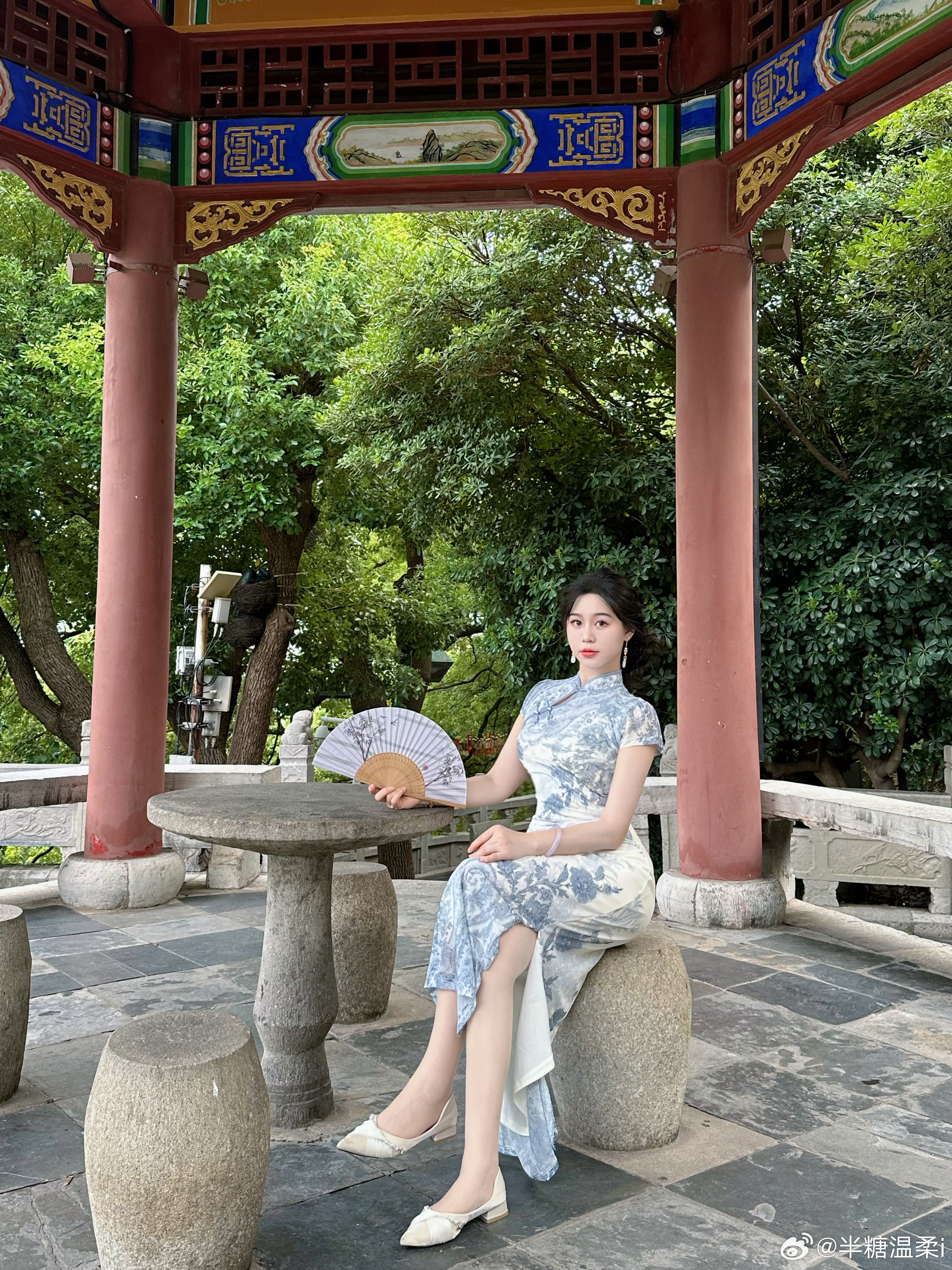 旗袍的美,在于分寸之间、开衩处若隐若现的矜持,腰身处恰到好处的勾勒。静立时如