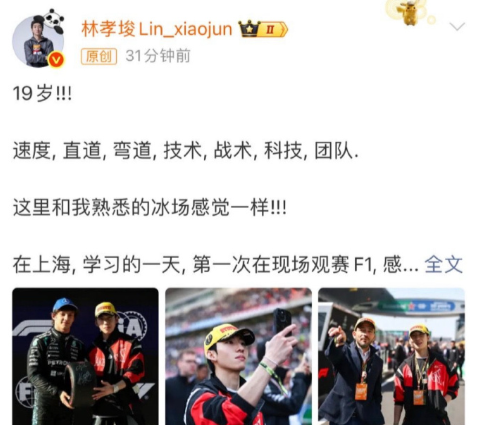 林孝埈第一次去现场观看F1赛事,这里很多东西都和他的冰上赛场差不多,让他感觉像熟悉的冰场