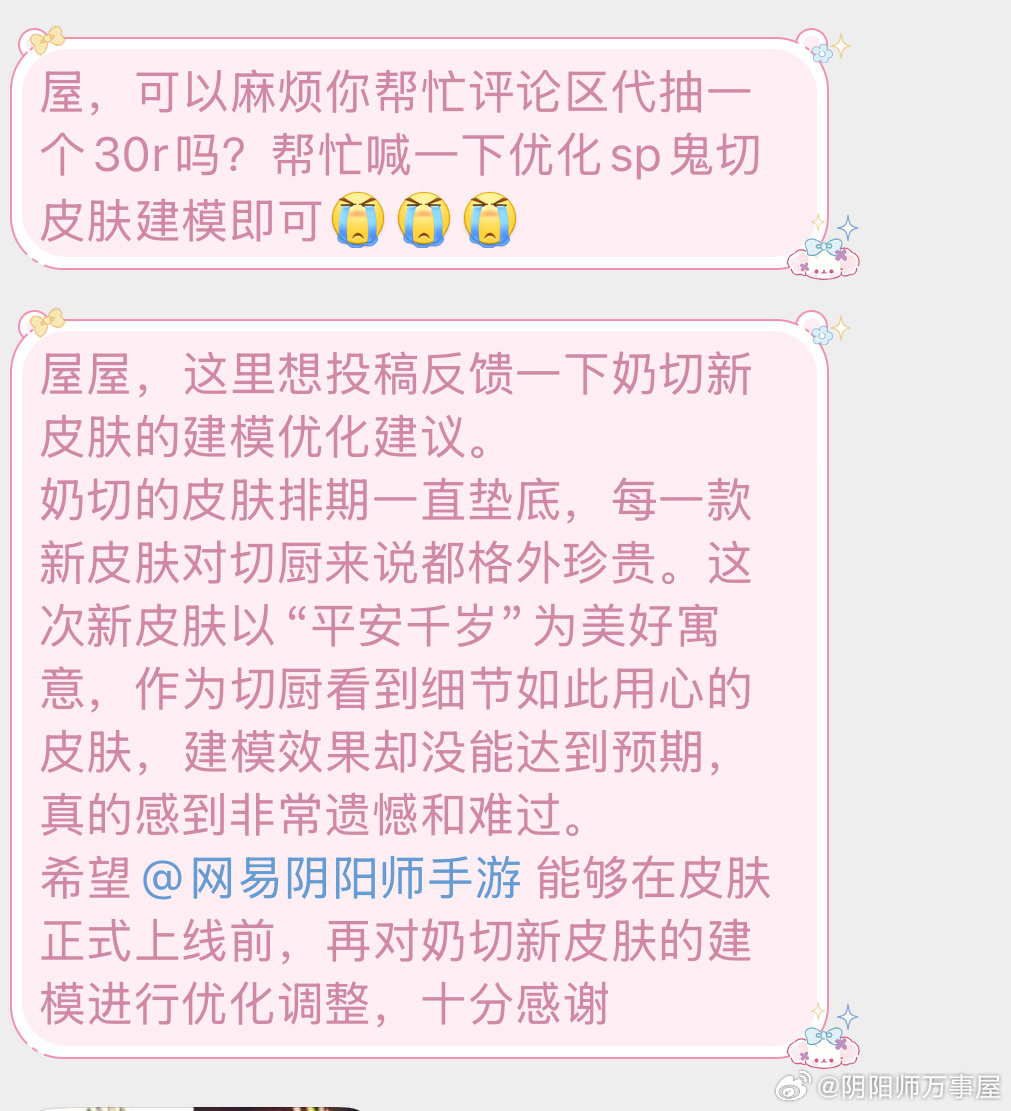 投稿人的诉求:“希望能够在奶切皮肤正式上线前,对奶切新皮肤的建模进行优化调整,十分感谢。” 抽奖详情