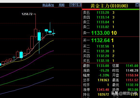 今天是周日, 回顾一下, 刚刚过去的一周, 国内黄金主力连续合约, 继续下跌,为连续第二周。 当然从盘面看, 是收于三根阴线, 但实际上只有二周回落!