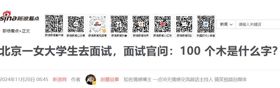 北京有一位女研究生去参加面试,面试官问道:“100个口是什么字?”女研究生回答:“一个口是口,两个口是吕,三个口是品,100个口没有这个字吧!”面试官说:“肯定有这个字啊,你回去再好好思考一下……” 林晓坐在面试间里,这是她近期第7次走到名企的最后一轮面试。眼看交流进入尾声,面试官合上简历,突然问了一个和专业完全无关的问题:“100个‘口’字凑在一起,能拼成个什么字?” 林晓愣住了。她脑子里首先浮现的是自己那一连串漂亮的履历,顶尖名校硕士、连续三年的奖学金、大厂实习经历。 在她的逻辑里,任何问题都应该有一个标准答案,就像她过去二十年经历过的所有考试一样。 她快速搜索了脑海里的汉字库,确认没有这个字,于是挺直脊背,很认真地回答:“字典里查不到这个字,从汉字构造逻辑上也说不通。”林晓觉得自己的回答很严谨,就像她以前拿高分的论文。 面试官没有直接反驳,只是笑了笑说:“其实没那么复杂,把‘百’字头顶那一横去掉,剩下的不就是个‘白’吗?” 这个回答让林晓哑口无言。她瞬间想起自己在实习时的状态,遇到解决不了的难题,她习惯一个人关起门来死磕,拒绝所有社交和求助,熬通宵也要磨出一个方案。 在学校,这种做法会被老师评价为“刻苦钻研”。但在那一刻,她通过面试官的眼神意识到,在企业眼中,这种执着更像是一种僵化。 “职场不是闭卷考试。”面试官最后说。他们需要的并非一个能背下整本操作手册的人,而是一个在规则之外能找到出路的人。 走出公司大楼,林晓感觉有些难受,但心里却前所未有的透亮。她意识到自己一直以来都患有某种“标准答案依赖症”。 以前她总觉得,学历是一张保票,只要成绩足够好,社会就理所应当给她相应的回报。但现实很直接,学历只是敲门砖。 在人工智能可以秒速处理海量信息的今天,公司看重的不再是你会多少知识,而是在面对突发状况和模糊地带时,你能不能打破常规去解决问题。 这就像做生意。普通人可能只在算进价和售价的差额,而真正有生存能力的人,会去思考如何在资源匮乏的环境下创造出溢价。这种思维模式的不同,直接决定了职场发展的上限。 林晓回想起过去为了追求所谓的“唯一正确”,她拒绝过很多次跨部门合作,也在很多没有出口的死胡同里浪费了大量精力。 在管理者眼中,这种“低效率的勤奋”其实是极大的资源浪费。真正的高手,往往是那些懂得整合资源、灵活借力的人。 这次面试虽然失败了,但对林晓来说,那道关于“100个口”的怪题本身并不重要。它更像是一个提醒,提醒她跳出应试教育形成的思维定式。 职场不会因为你足够努力就给你发奖状,它只看重结果。当你能够放下对标准答案的执着,开始学着在混乱的局面中理出新秩序时,才算真正开始了职业生涯。这堂课虽然上得有点疼,但却让她学会了如何真正社会化。 信源:北京一女大学生去面试,面试官问 新浪网 2024年11月20日