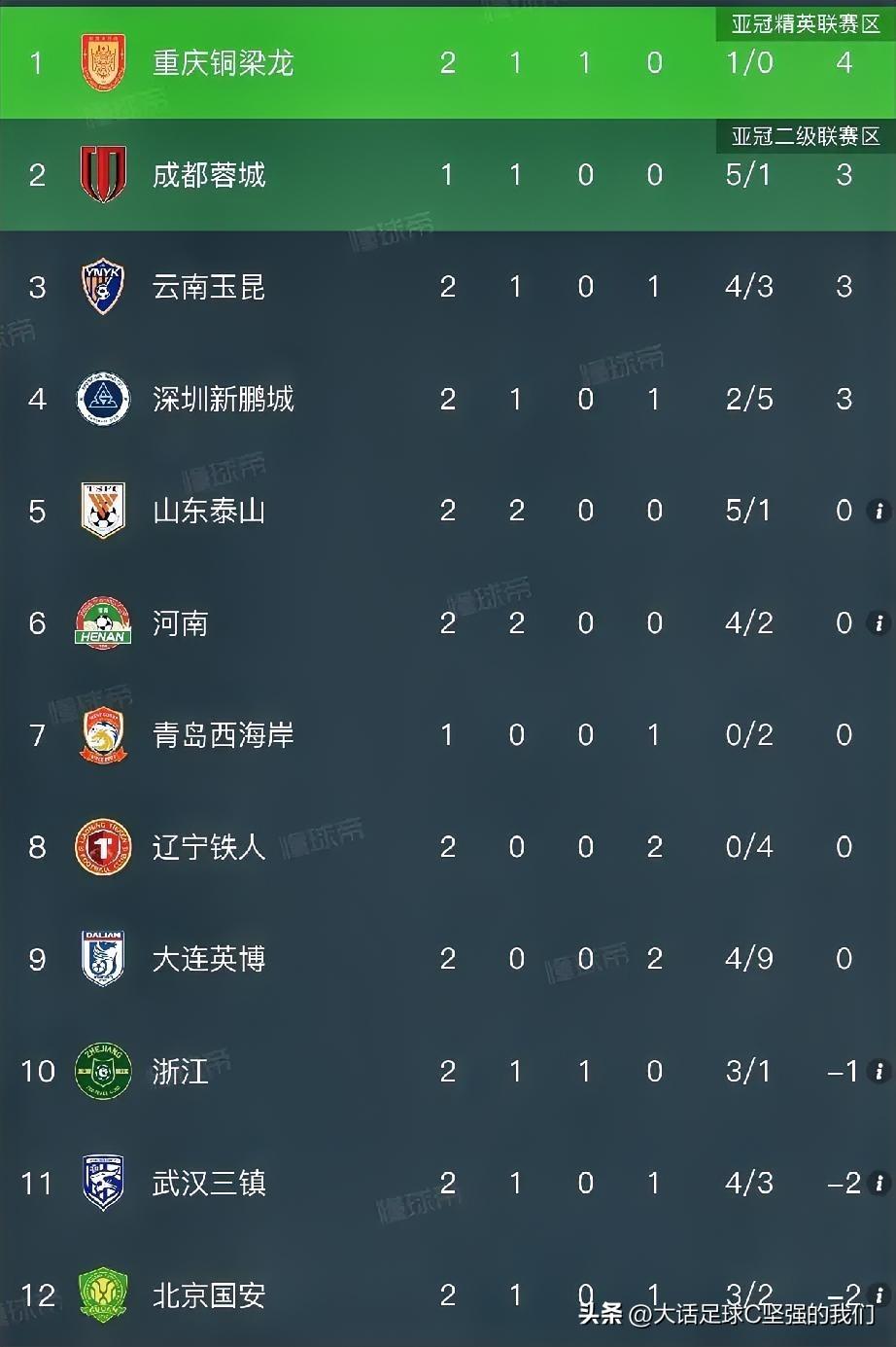 没想到,完全没想到! 升班马重庆铜梁龙,1胜1平,积4分,升到积分榜榜首![呲牙] 山东泰山,两连胜,积0分,脱负! 河南队,两连胜,积0分,脱负! 浙江队,1胜1平,积-1分,还差一分! 辽宁队和大连英博,两连败,积0分,没想到,竟然不是垫底的,后面还有7-8支球队![我想静静] 乱世中超,这下好看了!