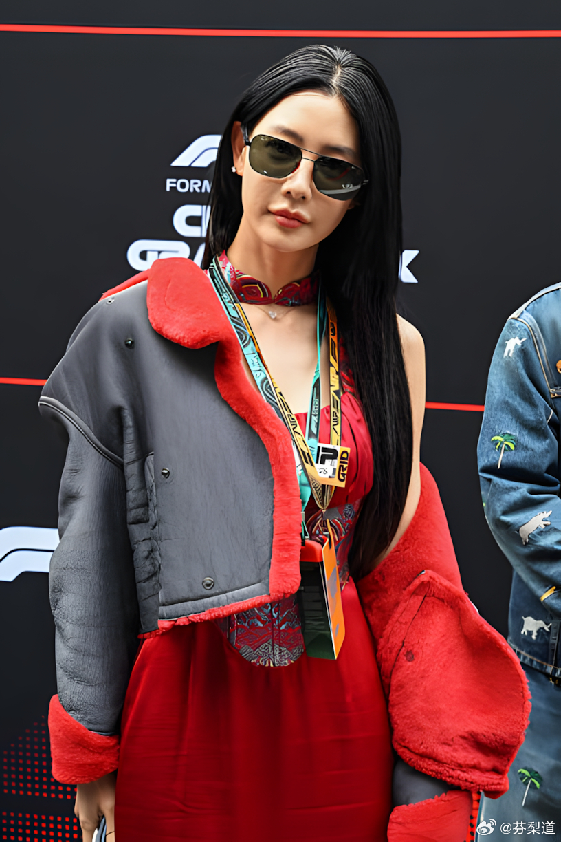 F1正赛F1中国大奖赛前国门赵丽娜和前F1车手库特哈德围场内为某品牌做活动,这身
