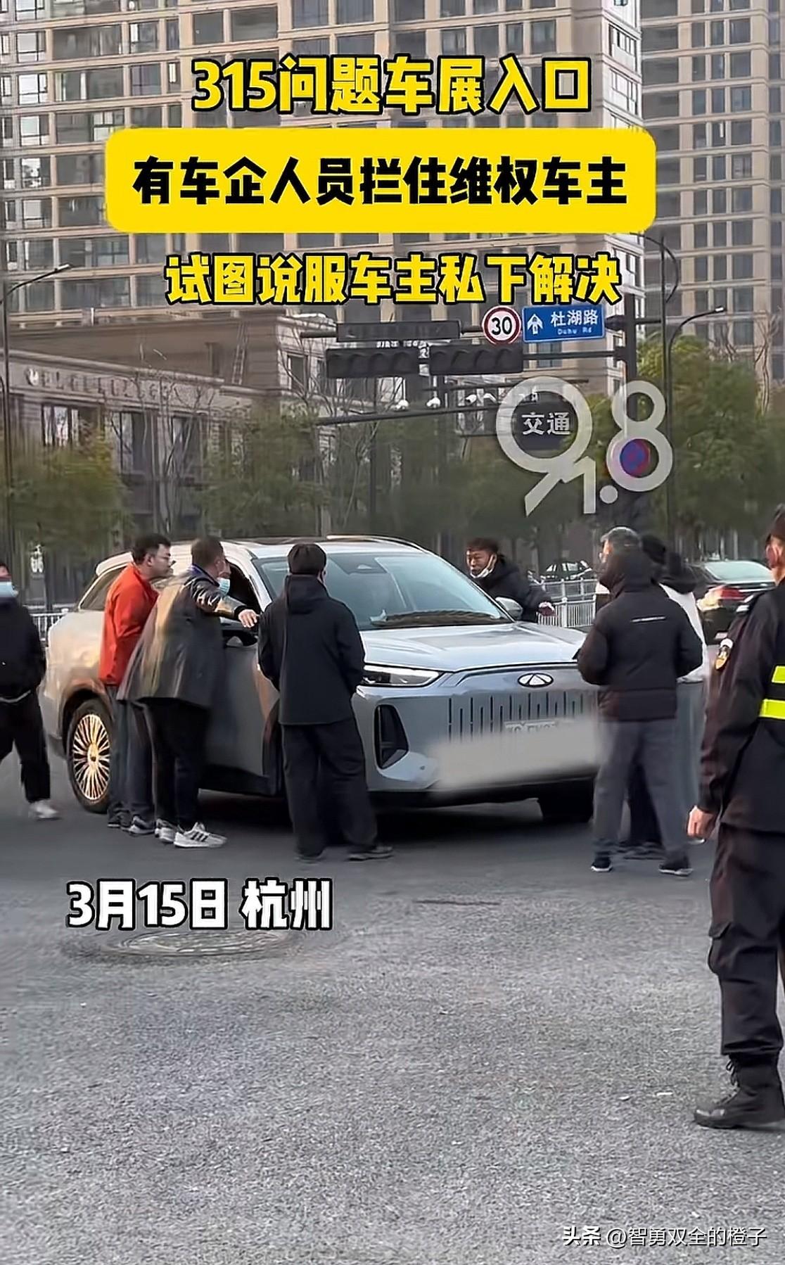 杭州3.15问题车展现场! 发现一个有意思的细节, 奔驰宝马奥迪的车进场没人拦,而其它品牌的车离门口还有几百米时,就有工作人员上前去团团围住,只要车主答应不进场,有啥问题都好商量,现场提条件,10分钟就能解决。 要是车主不答应,有些工作人员就直接坐上副驾驶,和车主软磨硬泡,还有把车标挡住的,甚至还有人用脚垫轮胎,阻拦车辆前进,最终车主无奈离开。 有一个问题想不明白,平时车主反映问题时,这些车企为什么不积极解决,非要等到3.15这天,才想起来为车主解决问题,有啥意义嘛! 大家怎么看呢?