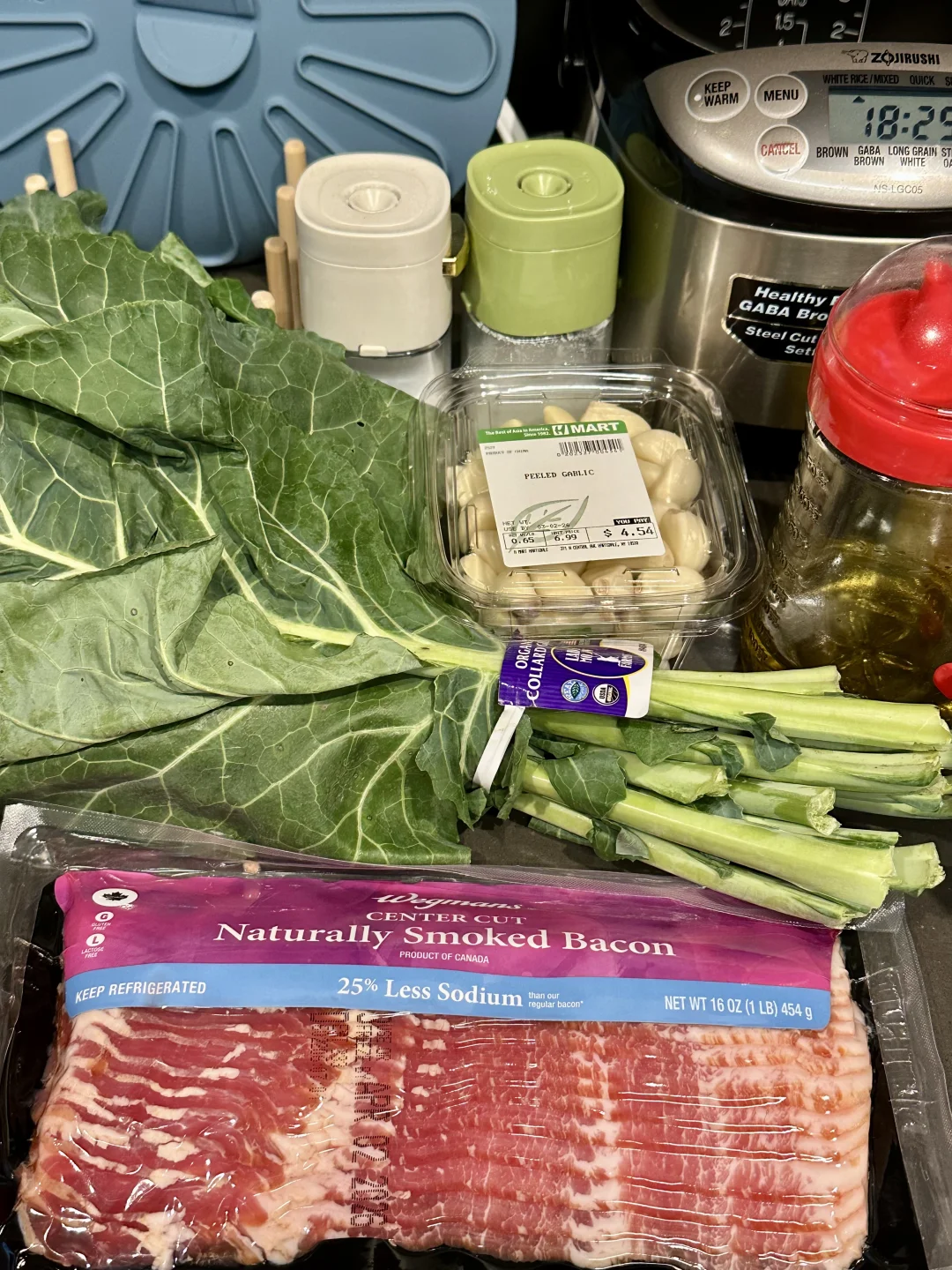 然而谁成想?之前有一次点超市grocery的外卖,有个蔬菜因为缺货,被配送员自动换成了collard green😂送过来看着这一大束强壮矫健的叶子,想着这植物长这么大也不容易,还是别浪费好好把它吃了吧🫡
