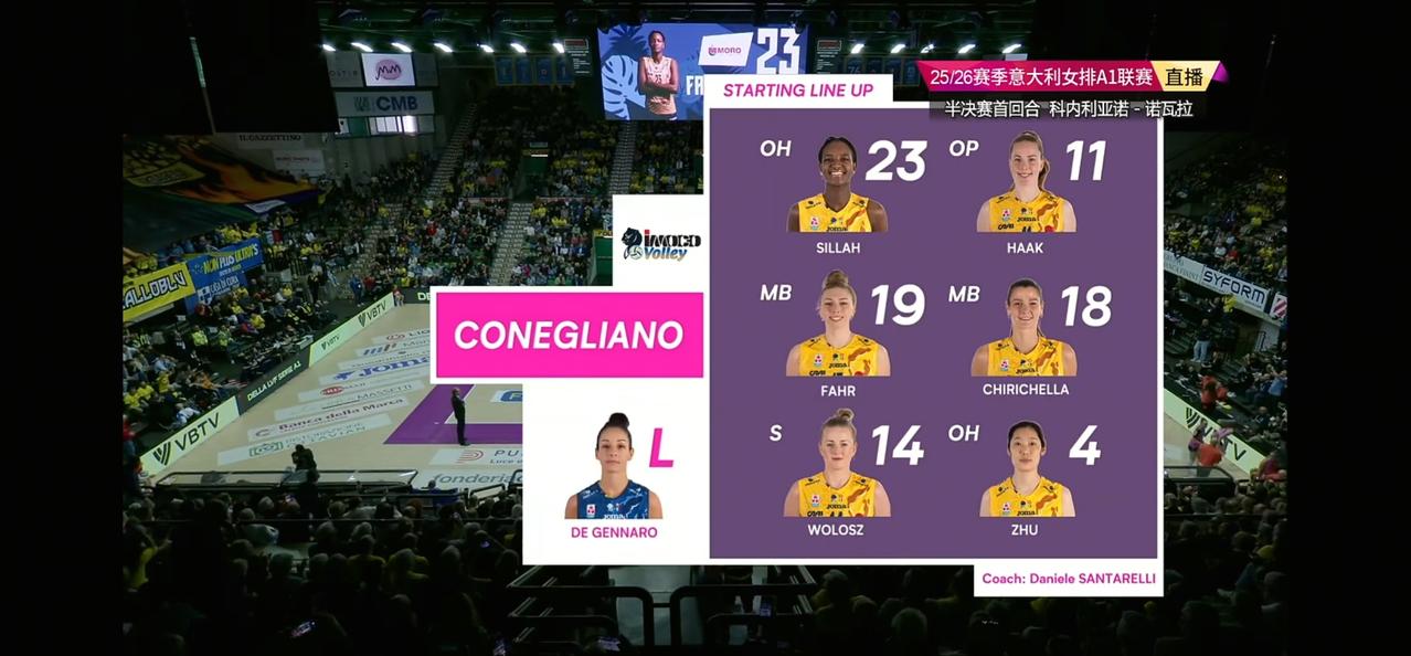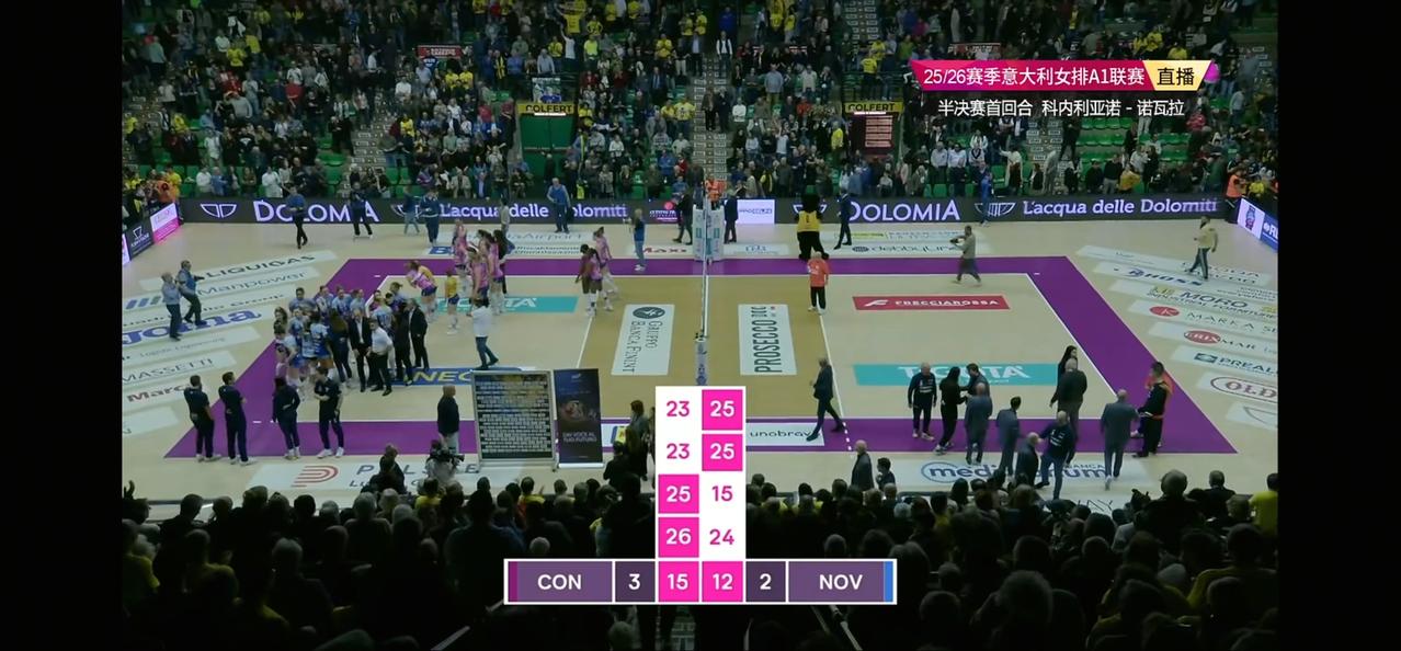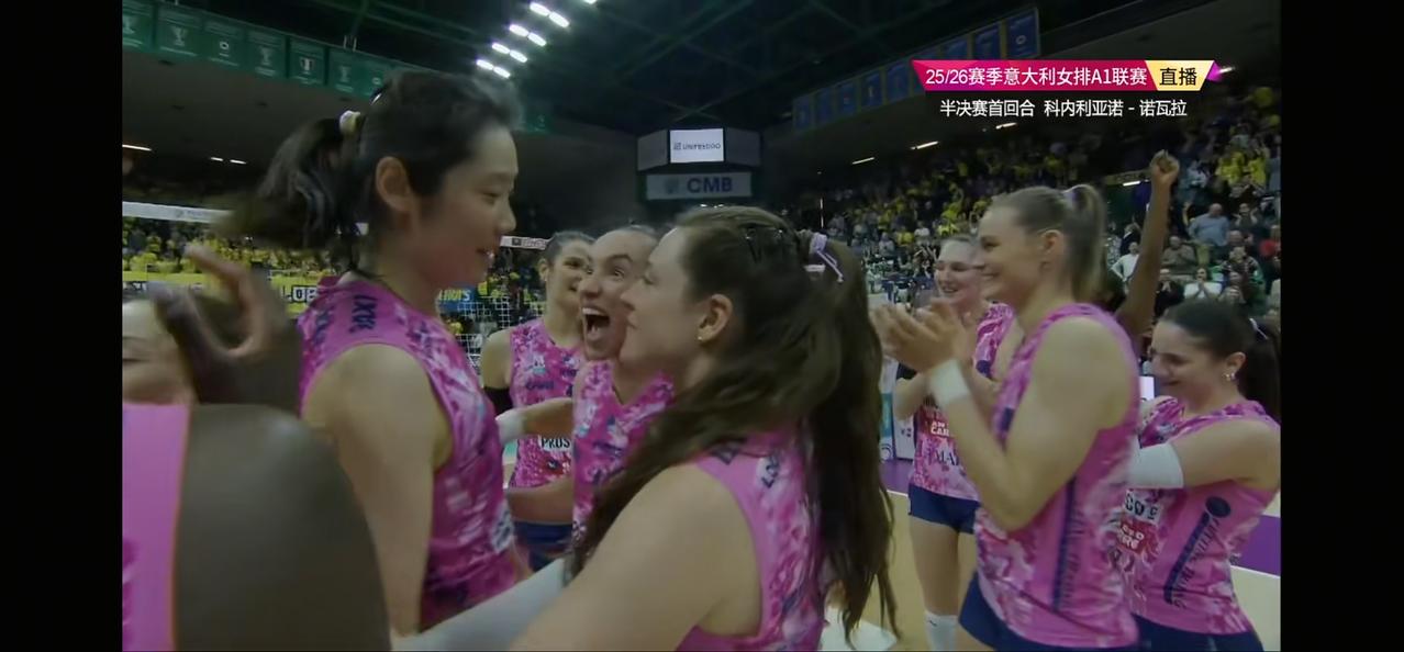 在今天凌晨结束的2025-2026赛季意甲女排联赛半决赛首回合的一场比赛中,朱婷效力的科内利亚诺以3:2战胜诺瓦拉赢得先机,本场比赛由于是关键的半决赛,科内派出了除加比外的全部主力应战,替补主攻西拉替换有伤病的加比首发。本场比赛可以说是一场惊心动魄的比赛,科内第一局打到关键分时主要得分手哈克状态不佳,而二传沃洛兹还是把球传给她,导致第一局以23:25惜败,第二局科内一开始大比分落后,虽然后面直追但还是再以23:25遗憾丢掉,第三局科内稳住阵脚稳定发挥,以25:15轻松拿下,最精彩的是第四局,双方打到24平,这时候朱婷站出来帮助球队以26:24拿下,双方进入决胜局,决胜局双方打得也是异常胶着,科内最后依靠朱婷的重扣以15:12结束战斗,本场比赛科内在先失两局的情况下连扳三局大逆转获胜跟朱婷的出色发挥分不开,朱婷全场拿下21分获MVP实至名归,祝贺朱婷[玫瑰][玫瑰][玫瑰]这样的朱婷国家队不用真的是一个大笑话,双方第二回合将在3月22日4点15进行。