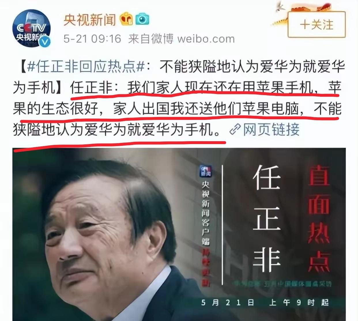 任正非一段多年前的话: 家人也在用苹果手机与电脑
