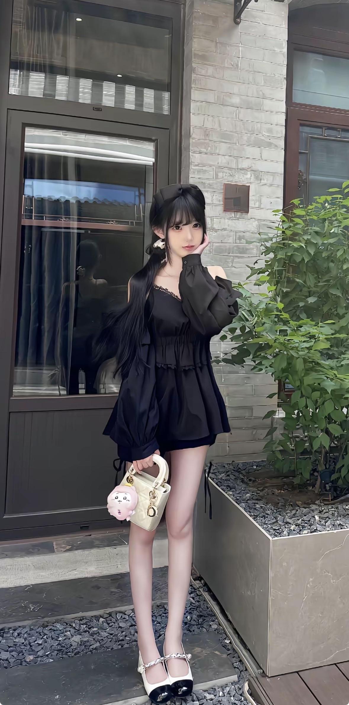 甜美少女风穿搭,白色衬衫+印花短裙,搭配可爱兔子包,少女心满满!💕👗👠🐰