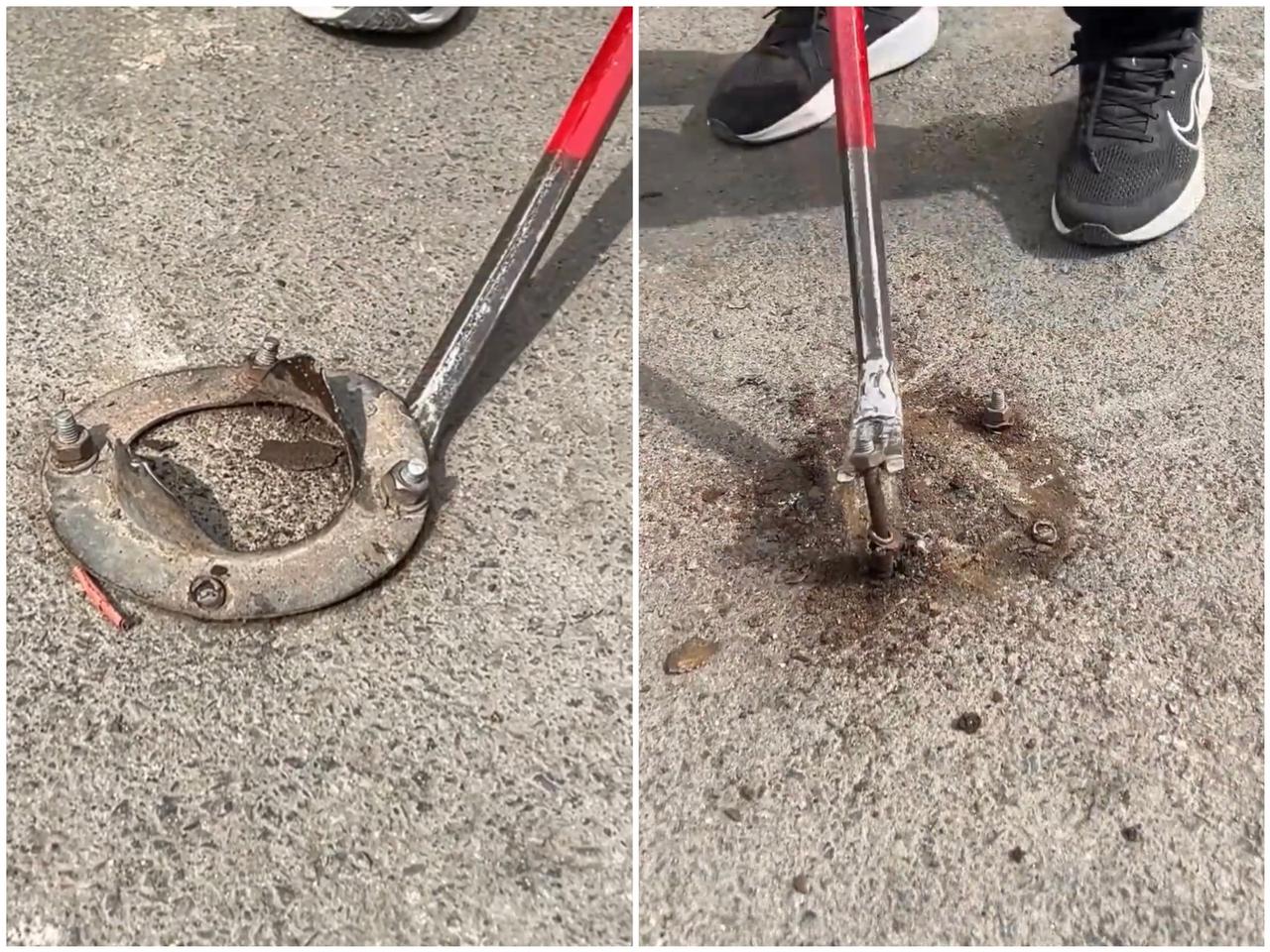 "管闲事的人。"郑州,一位父亲孩子被路面地钉扎伤后,没有抱怨,而是自备工具,多年
